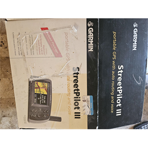Garmin Street Pilot III GPS Receiver Bundle W/Car Charger Data Card CD's, appears to work.I added new batteries, and it powers on!Comes with original box, I don't see a manual.