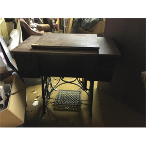 It's a pedal sewing machine so this sewing machine comes out and you pull it up and it's sits on the table four drawers the yarn is still in it from the 1920s it was my grandmother's and I'm thinking
